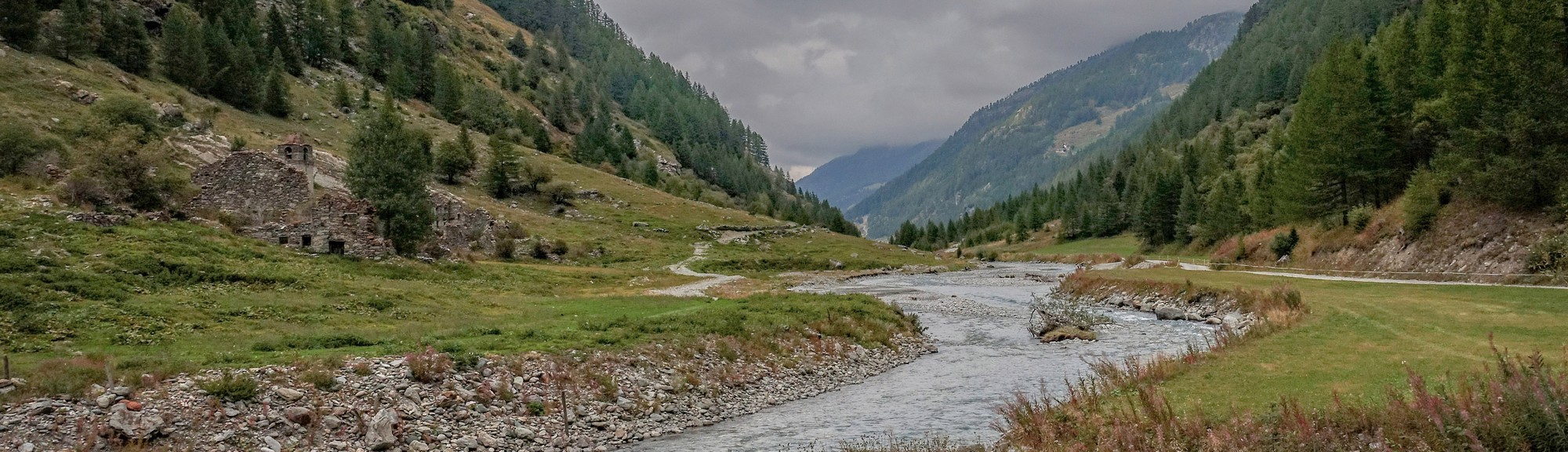 Eventually the road started going through some pasture with cows grazing. And the gradient eased up. I thought that by going up this valley I would end up in the middle of nowhere but there had been tiny hamlets that I’d pass through and then suddenly there was a reasonably large place called Valgridenche, which is also the name of the river that’s formed this valley. There were lots of things in place for visitors like car parks, etc and even a bus went by me and someone got off at one of the bus stops in one of the villages so it wasn’t really the middle of nowhere.