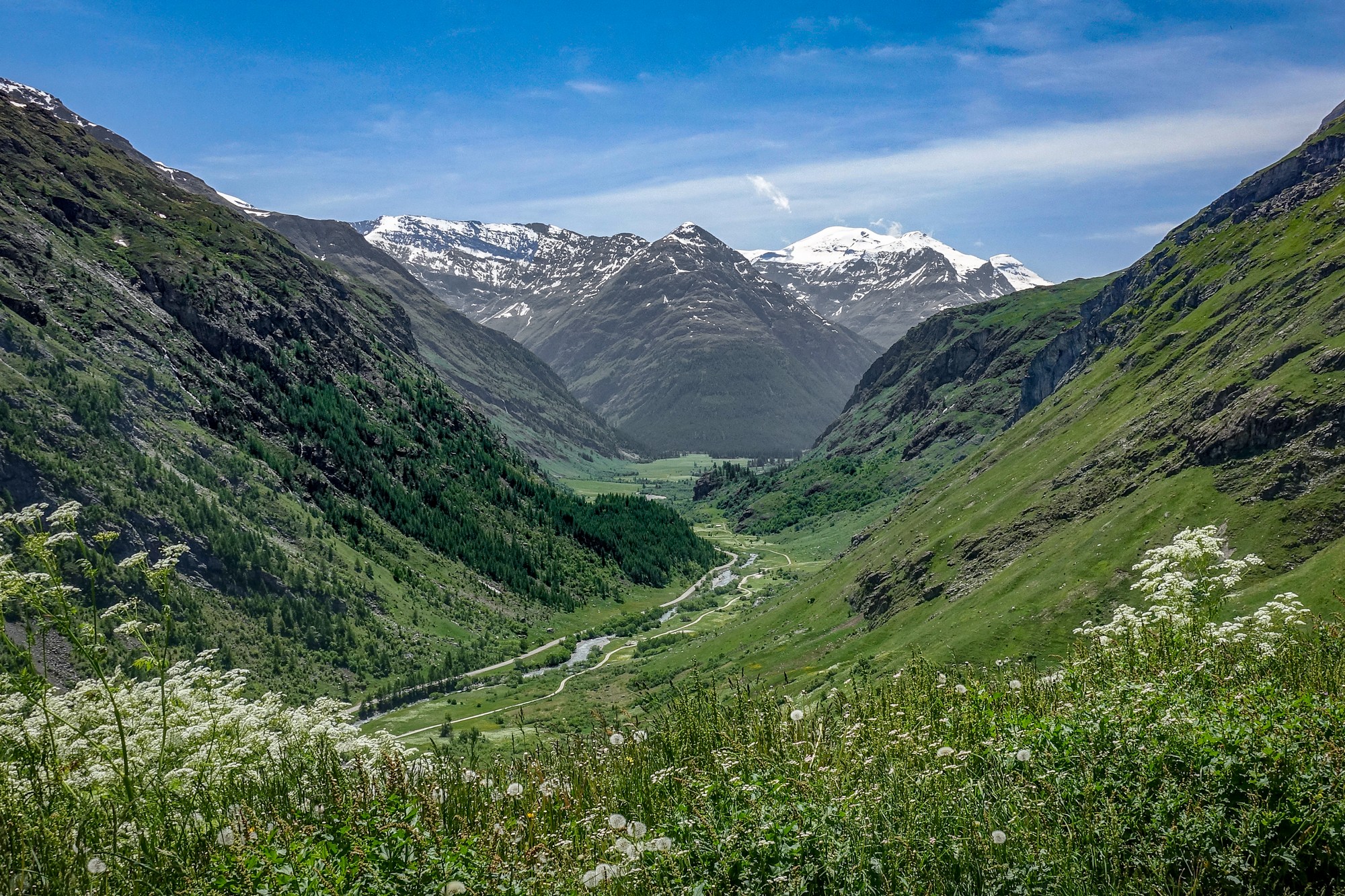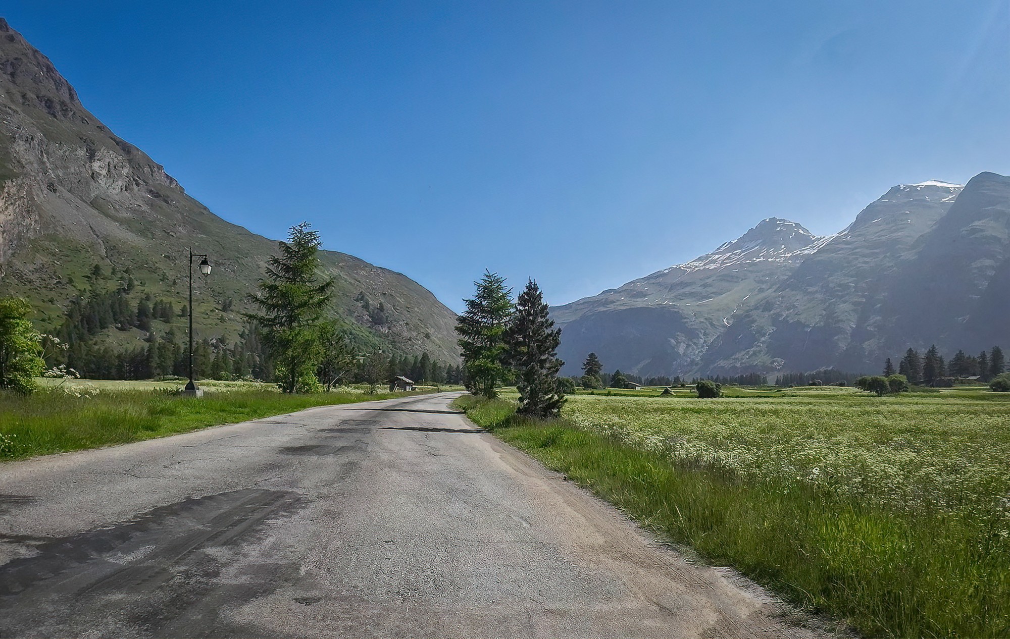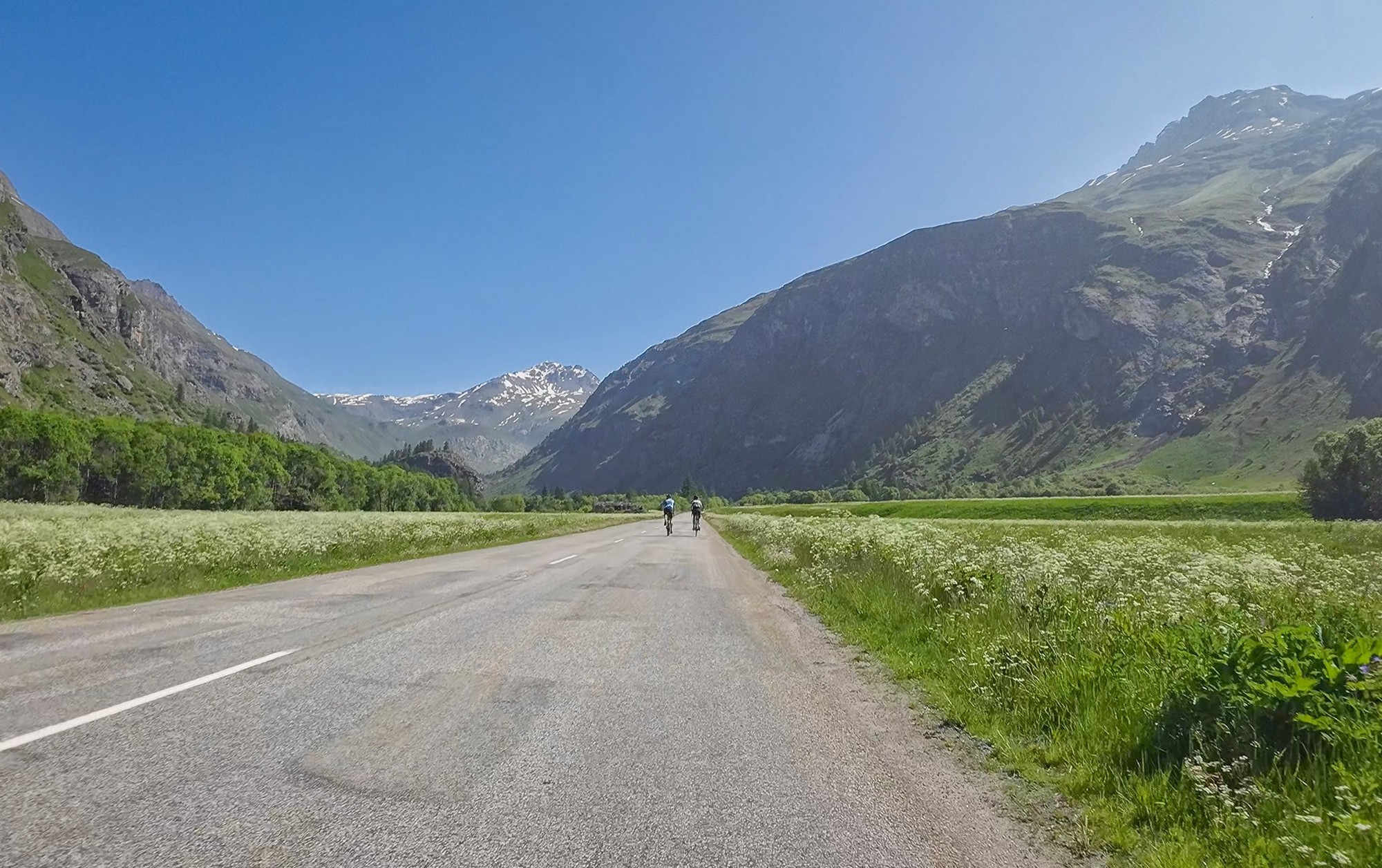 And that stretch of road, already beautiful from Lanslebourg, just kept getting better after Bessans, as the valley floor widens on either side. I found myself riding along a quiet road between alpine meadows carpeted with the flowers of spring, mountains rising all around me, sunshine overhead, and barely any traffic. Need I say more..?