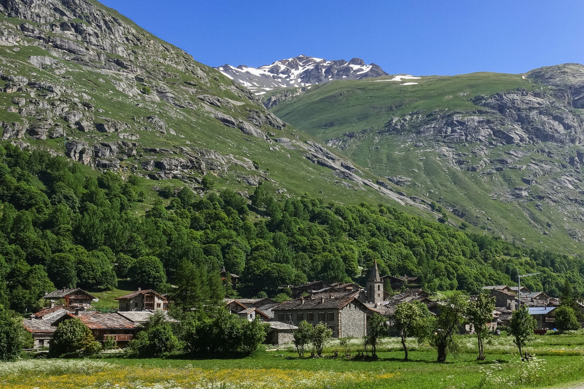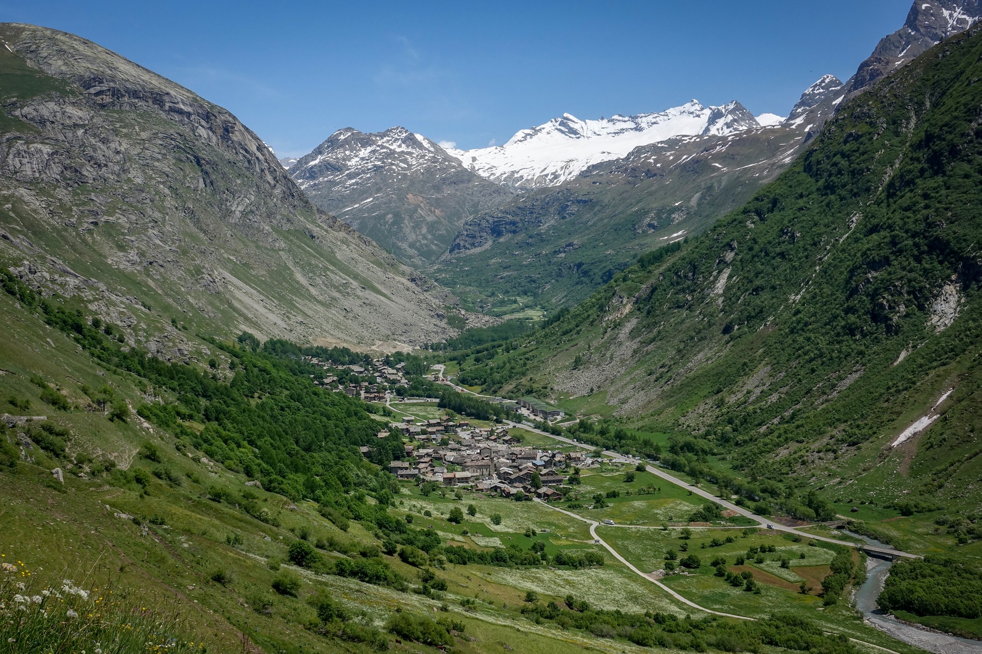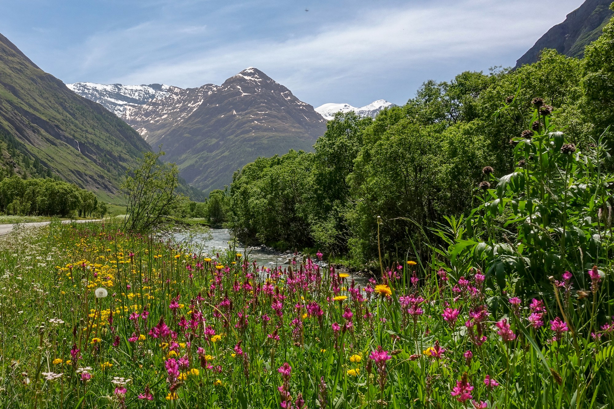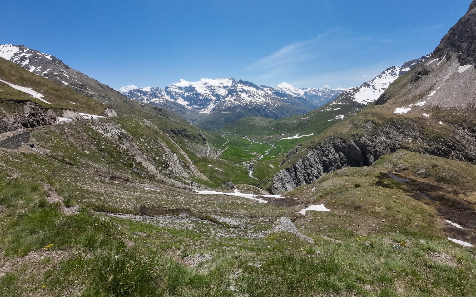 And that stretch of road, already beautiful from Lanslebourg, just kept getting better after Bessans, as the valley floor widens on either side. I found myself riding along a quiet road between alpine meadows carpeted with the flowers of spring, mountains rising all around me, sunshine overhead, and barely any traffic. Need I say more..?