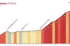 From Bonneval-sur-Arc it’s an eight-mile (13 km) climb at an average of just under 8%. But the profile draws a more detailed picture, showing three distinct ramps separated by short respites.