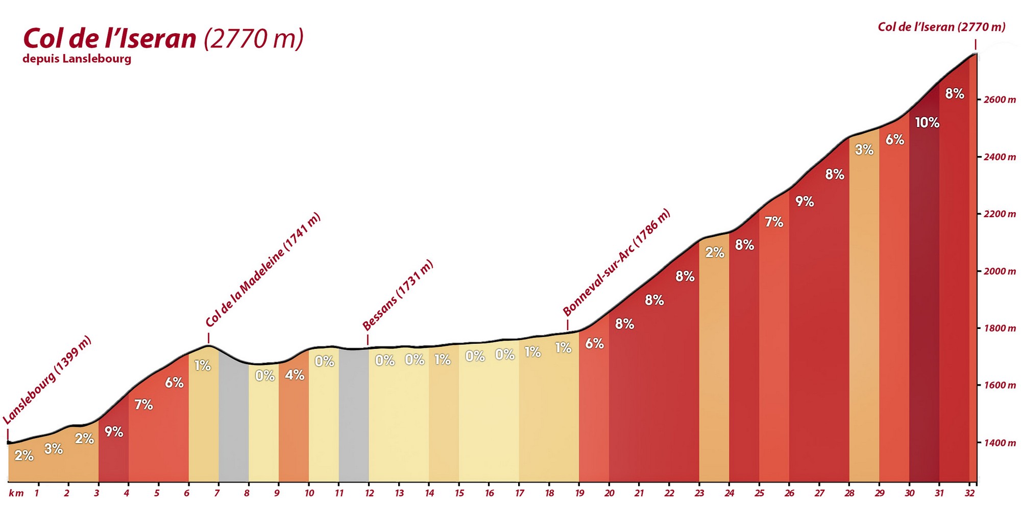 Easier last eight miles from just beyond Val d'Isère - only 6.3% avg