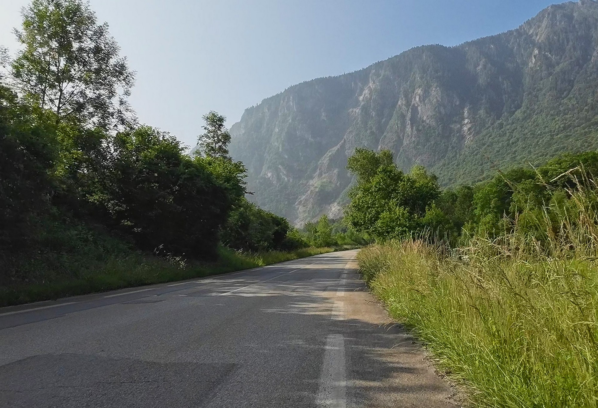 There was a slight tailwind and the drag from the passing lorries helped further. The mountains ahead were somewhat obscured by a misty haze. I reached Saint-Michel-de-Maurienne in just over an hour. That’s where the climb to Col du Télégraphe starts. I stopped to make some notes and have a bite of banana.