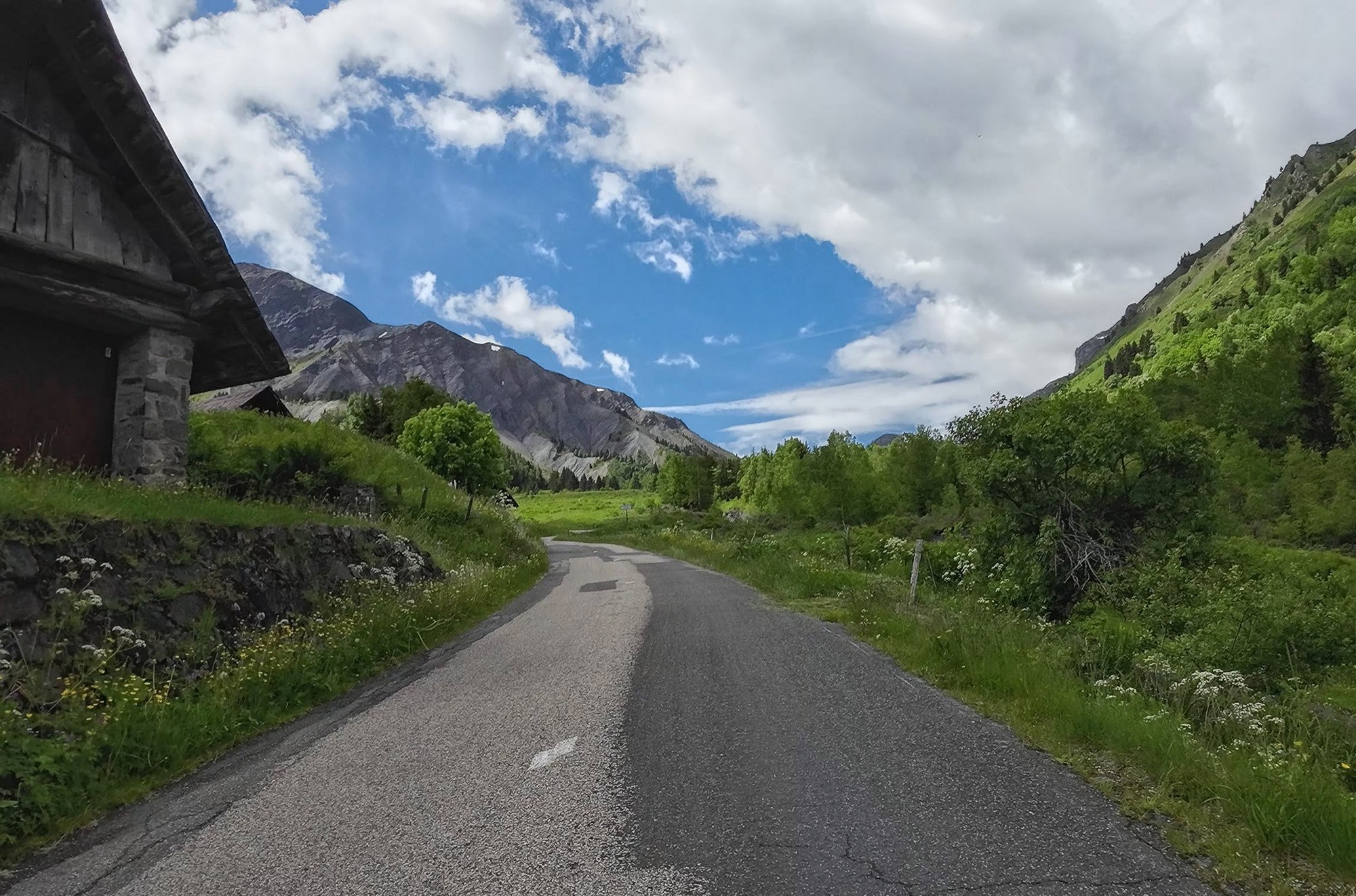 Once through town, my route crossed over all other lines of passage squeezed along the Maurienne valley: first the River Arc itself, earliest occupant of this glacially-carved corridor; then the D1006 main road; then the railway, and finally the A43 autoroute, leaving me on the quietest of the lot, the D77 ‘route départementale’.