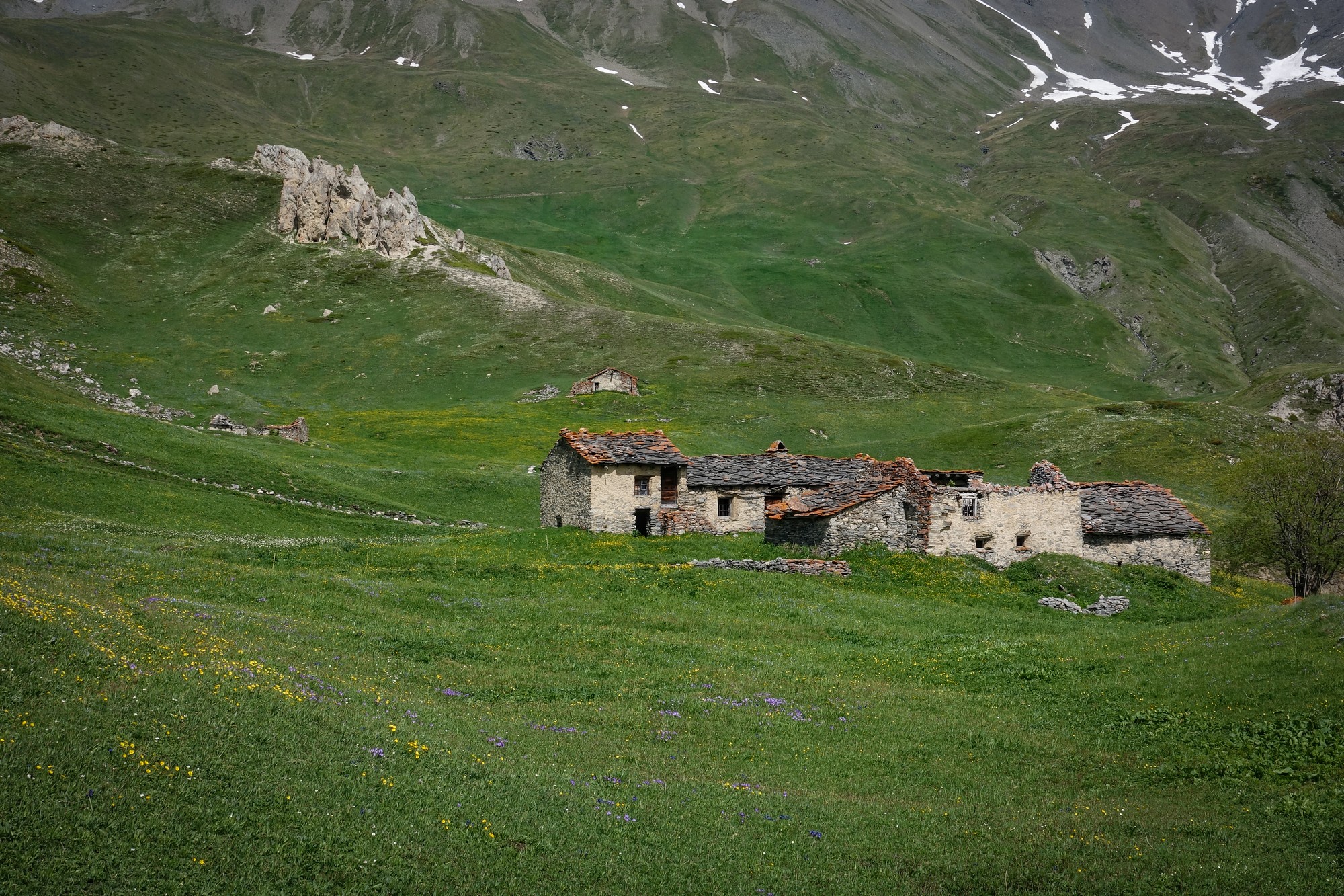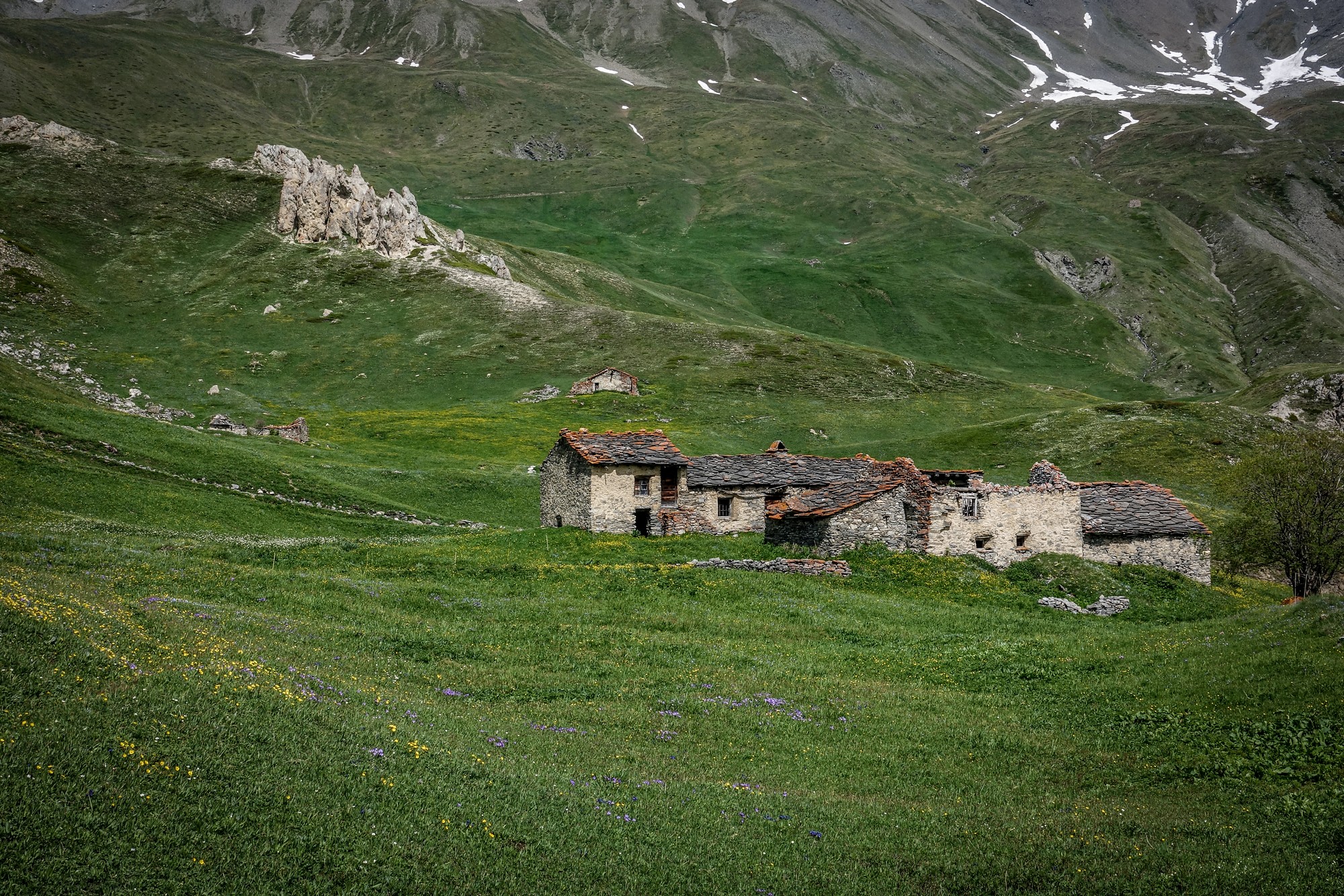 Old stone buildings dotted the landscape, as I climbed higher.