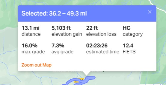 13.1 miles at 7.3%. That’s quite tough. But I don’t necessarily have to do that without stopping.