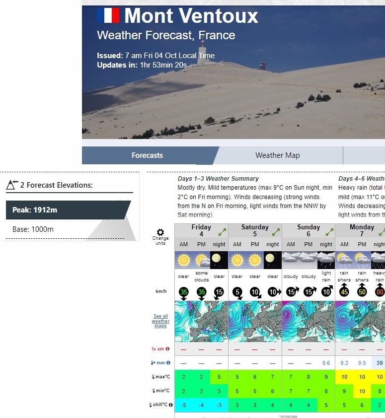 The weather has been looking good for Saturday (tomorrow) for the past several days, and I’m pleased to see that it still looks good. I just looked on the mountain forecast website, and that shows that I might be lucky again (like I was in 2016) finding a slot in the surrounding day's weather, certainly wind-wise.