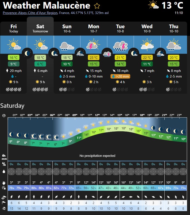 Highest temp will probably be the start of the ascent from Malaucène when it could be 17°C or 18°C