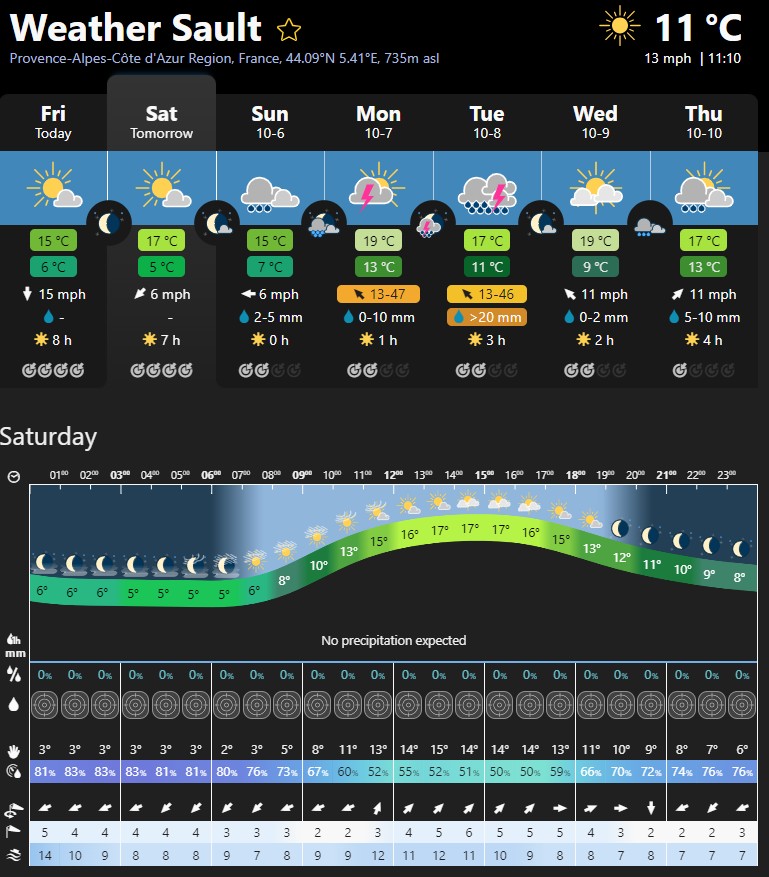 So it would seem a good time to start from Sault would be 9am, theoretically to be back by 17:30 or so. So try to leave here at 8:15 AM