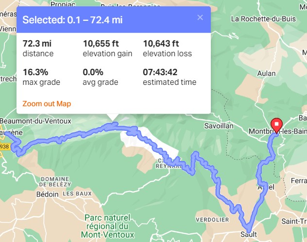 Sault to Mont Ventoux - 2 hours 20 minutes (RWGPS estimates 2:12)